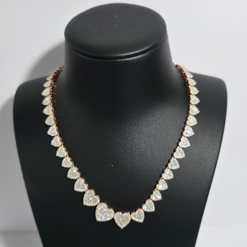 This exquisite tennis necklace is designed with heart-shaped links, each encrusted with dazzling diamonds set...
