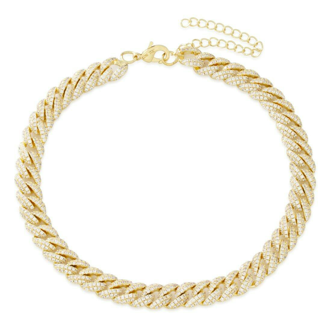 Inspired by the success of our ultra icy 2021 Bracelets and Chains, we needed a women's line that can keep up. This Iced Miami Cuban Link Choker Chain features ice on every link and an adjustable length from 13" - 16" making it the perfect chain for layering.