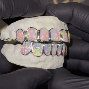 Add some fire to your smile with our Opal Grillz, where elegance meets your unique vibe. Made from your choice of Sterling Silver, 10k Gold, 14k Gold, or 18k Gold, these grillz are set with vibrant opals in a wide range of colors, giving you the power to create a look that’s all yours. Whether you’re into the classic opal shimmer or bold shades like blue, pink, or green, these grillz are built to turn heads. Each opal is custom-cut to match the shape of your teeth, delivering a fit and finish that’s as flawless as your style.
