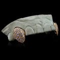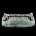 Shine all day, every day! This beautiful 6-piece connect fangs grillz set boasts VVS clarity moissanites on the canines, but if you want to go extra hard, we offer the option of icing out the bridge bar too. For those who want a simpler look that highlights the iced out canines, no problem—you can go with a back bar instead. We also offer the option of extending the canines into fangs! Gold lovers can also get this style done in 10k, 14k, or 18k gold.